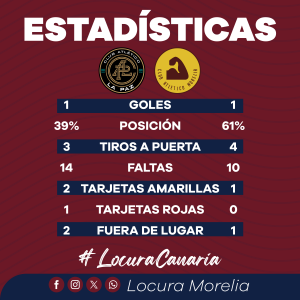 Morelia, Michoacán. – En el debut dentro del banquillo de Israel Hernández Pat al frente del cuadro rojiamarillo, no pudo mantener la ventaja en el marcador y terminó con un empate a un gol en los minutos finales con el Club Atlético La Paz.