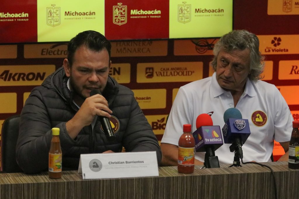 Morelia, Michoacán. – En conferencia de prensa en las instalaciones del Estadio Morelos, el director deportivo del Club Atlético Morelia, Christian Barrientos, presentó al nuevo director técnico del equipo michoacano, Norberto Hugo Scoponi Casanova.