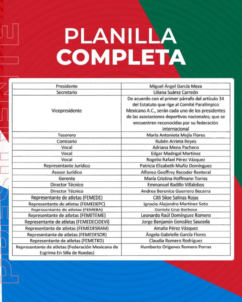 El Comité Paralímpico Mexicano reitera que este proceso se realizó con estricto apego a sus estatutos, a la legislación nacional y a las disposiciones internacionales del movimiento paralímpico, asegurando la continuidad institucional, la certeza jurídica y el adecuado funcionamiento de sus órganos de gobierno, siempre en beneficio del movimiento paralímpico nacional.