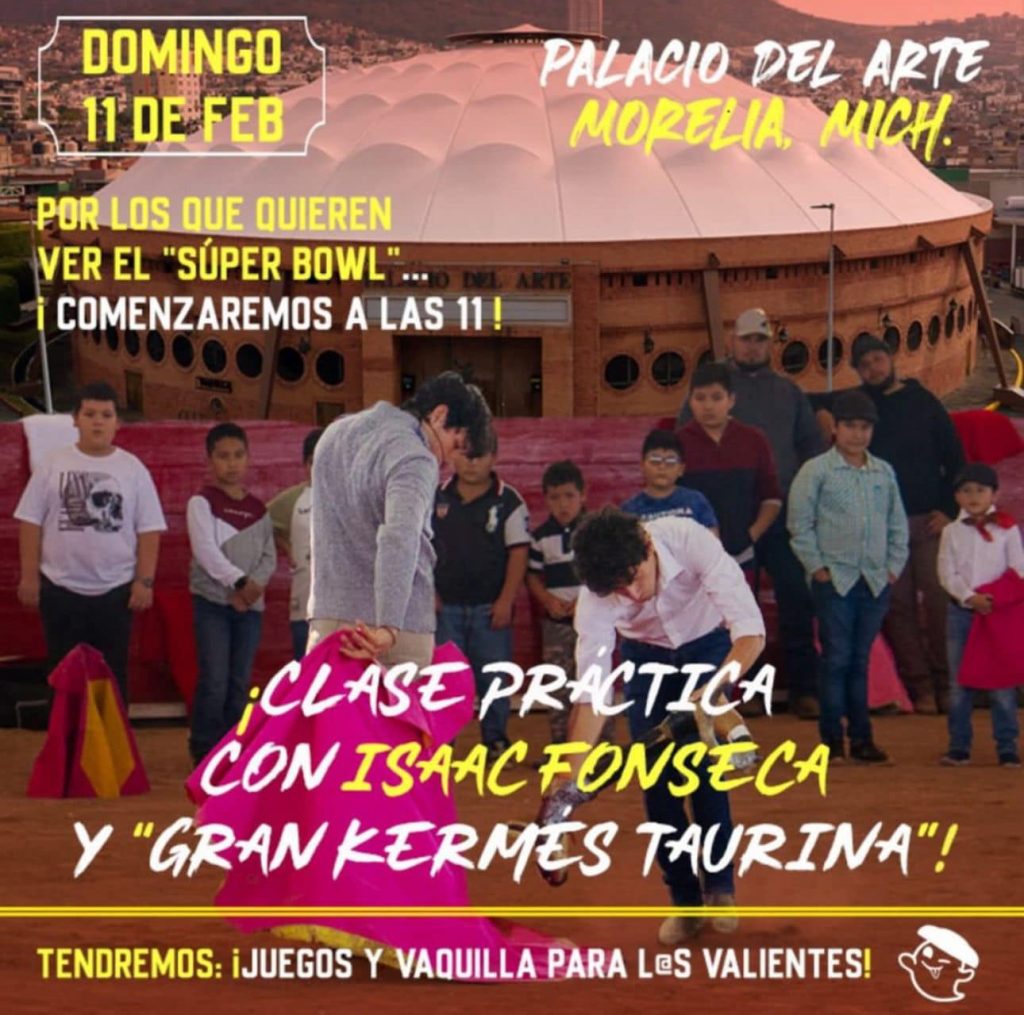 Morelia, Michoacán. – Con la intención de acercar a las nuevas generaciones al arte del toreo, el diestro michoacano, Isaac Fonseca, tendrá una clase práctica el próximo domingo 11 de febrero en punto de las 11:00 horas en las instalaciones del Palacio del Arte.