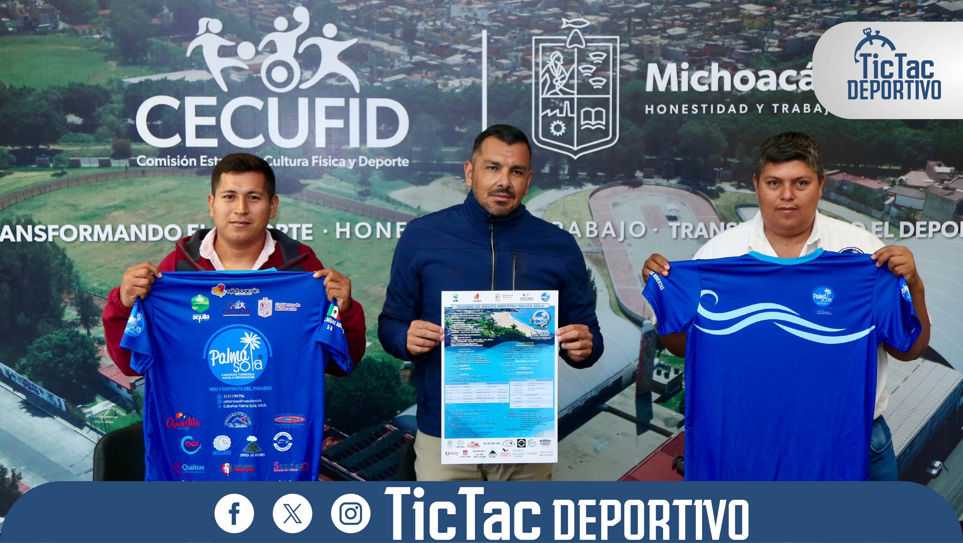 Morelia, Michoacán. – Con los ánimos e ilusiones renovadas, la Comisión Estatal de Cultura Física y Deporte (Cecufid), presentó en coordinación con el complejo turístico Palma Sola, la décima segunda edición del Campeonato Estatal de Aguas Abiertas, a celebrarse del 19 al 21 de enero, en las esplendorosas playas del municipio de Aquila.